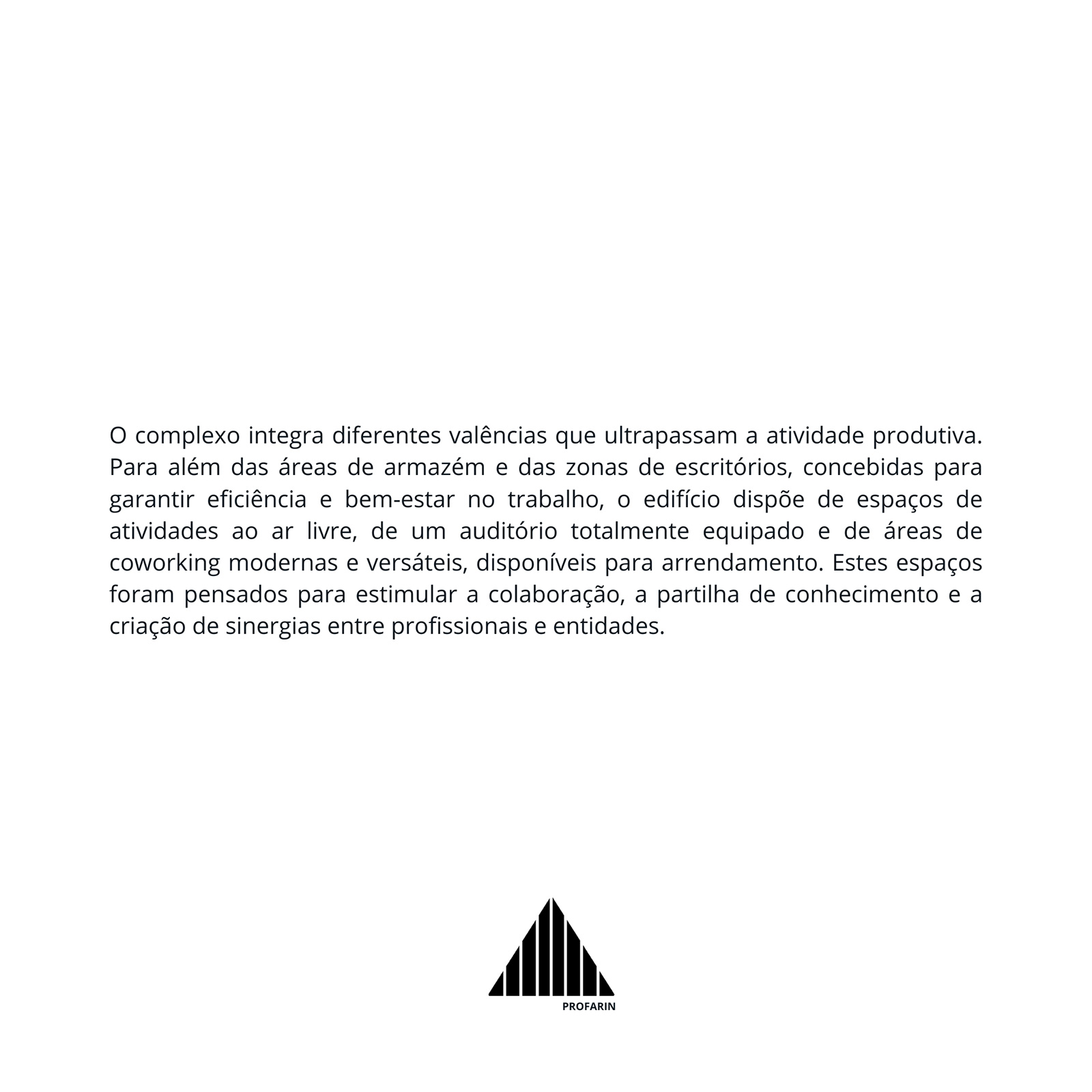 Programa: Sede de Empresa, Logística e IndústriaEstado: Em cursoAno: 2025 Área de Construção: 50.000 m2Localização: SintraValor do Investimento: 40.000.000,00 €Promotor: Profarin - Distribuidora de Produtos Farmacêuticos Industriais, Lda